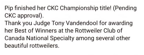 CDN CH Greta – (Pip) CDN CH GRETA-PIP Thank you Diana Cressman of CressmanRanch, for this amazing girl!! Health clearances available Hips, Elbows, Heart, JLPP & DNA tested